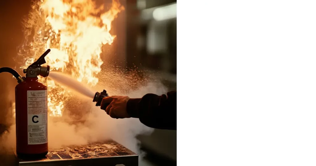 How to extinguish an electrical fire? If it’s safe, you must first cut off the power by turning off the circuit breaker. Then, use a fire extinguisher labeled Class C or ABC to smother the flames or cover the fire with a heavy blanket to cut off oxygen. Never use water, as it can conduct electricity and worsen the fire.